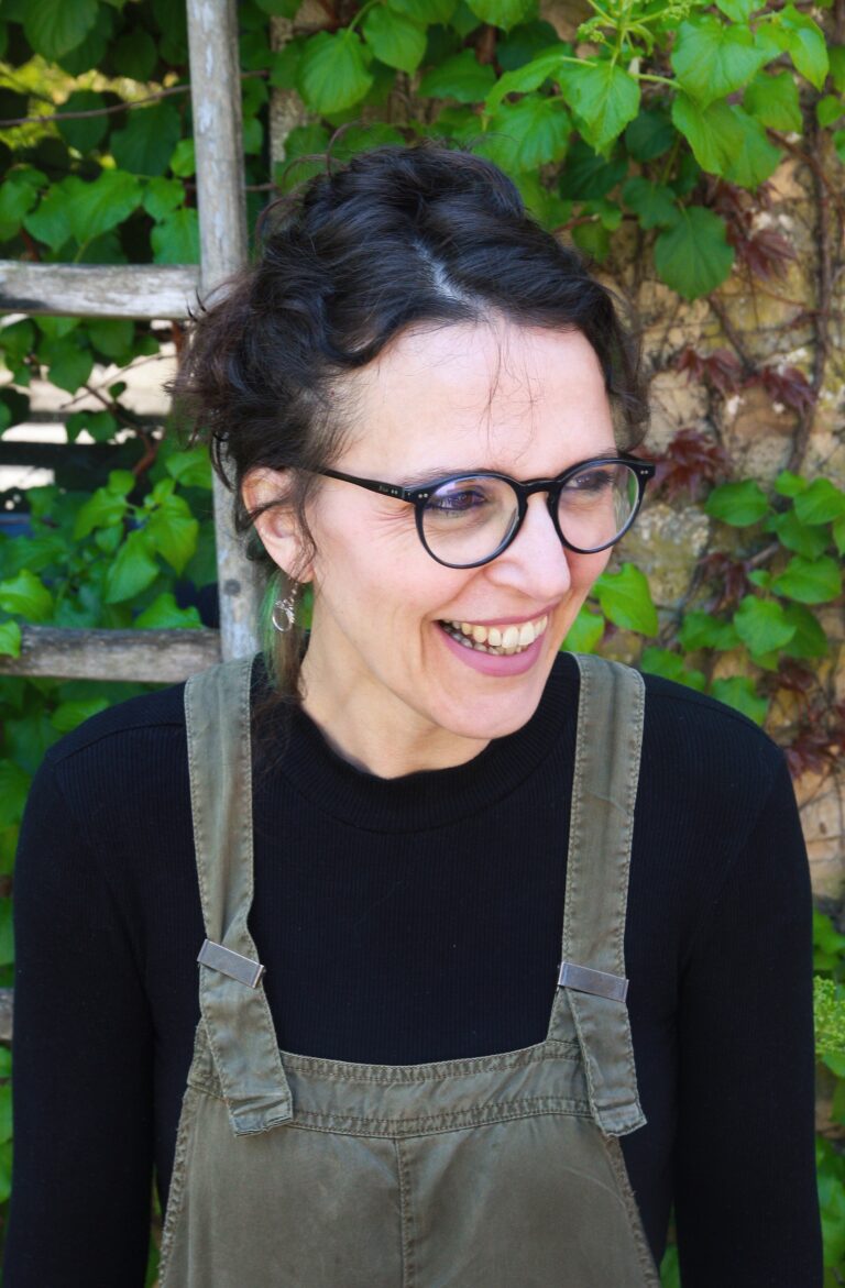 Graphiste de formation, elle travaille depuis 2003 à son compte dans l’illustration et la mise en page de documents de communication. Depuis 2011, à son arrivée à Bel Orient, elle met de côté cette activité pour faire un break et se ressourcer dans ce coin de nature. Elle découvre une autre source d’inspiration et puise plus en elle. Elle créé toujours mais de manière éphémère et non exposée… dans le jardin, le potager, la cuisine, avec les enfants… Elle se passionne pour les alternatives à ce monde de consommation : permaculture, plantes sauvages, cuisine cru, médecine harmoniste… pour un retour à l’autonomie. Elle tente de cultiver un art de vivre ! Puis retrouve une activité artistique en 2014. Elle continue également ses illustrations pour enfants et quelques travaux de fresques (hôpitaux…). En 2015, elle ouvre un atelier pour le « Jeu de Peindre », activité innovante créée par Arno Stern (découvreur d’un nouveau regard sur la Trace et le dessin d’enfant) auprès de qui elle s’est formée en 2014.