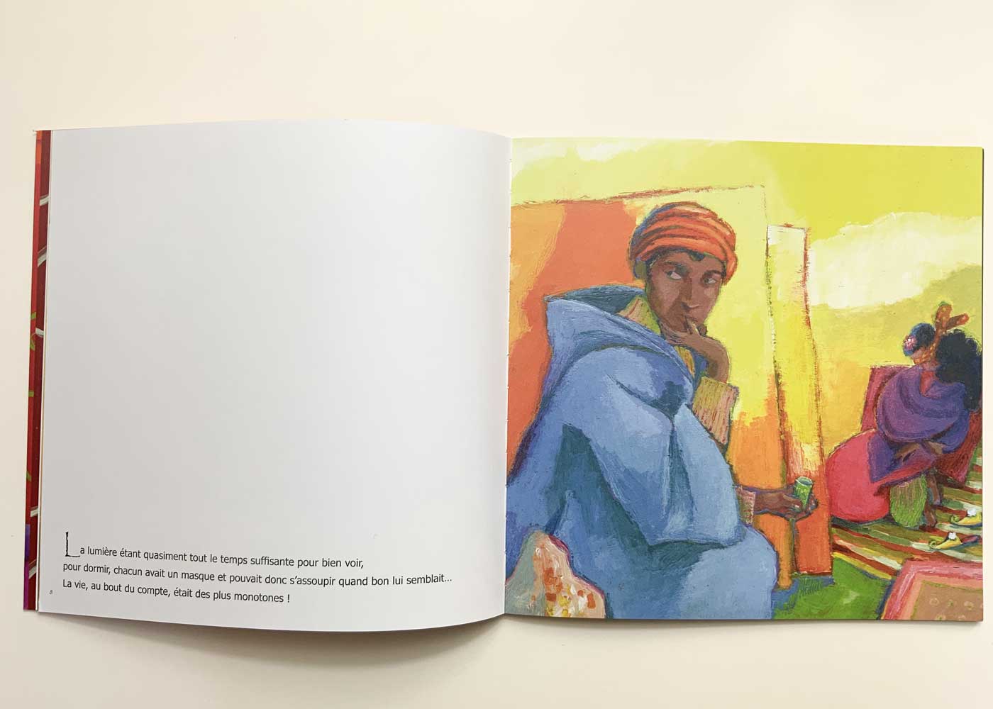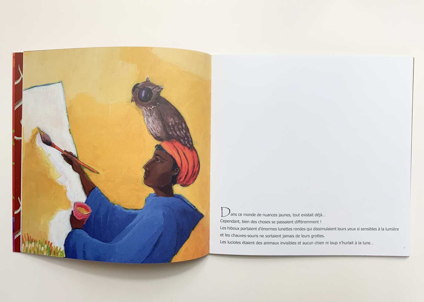 Il y a longtemps, la nuit n’existait pas. Le ciel était un immense tableau jaune d’où le jour ne s’effaçait jamais… Un jour, Naïm décide de prendre son courage à deux mains ainsi qu’une échelle et ses pinceaux, et de s’attaquer à ce ciel invariablement jaune…